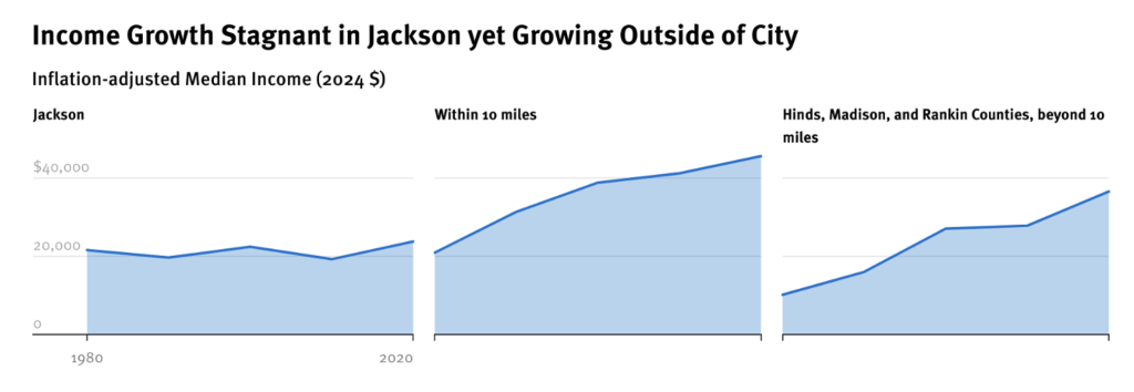 The exodus from Jackson was partially enabled by federal and state policies and funds that made suburban development popular and that had the effect of siphoning of resources that could have gone to the city.