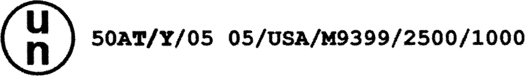 (2) Refillable UN bundles of cylinders must be marked clearly and legibly with certification, operational, and manufacturing marks. These marks must be permanently affixed (e.g., stamped, engraved, or etched) on a plate permanently attached to the frame of the bundle of cylinders. Except for the “UN” mark, the minimum size of the marks must be 5 mm. The minimum size of the “UN” mark must be 10 mm. A refillable UN bundle of cylinders must be marked as follows: