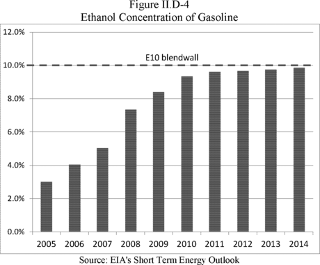 63. According to EIA’s Short-Term Energy Outlook (May 2015), pool-wide ethanol content was about 9.75% in 2013 and 9.85% in 2014.