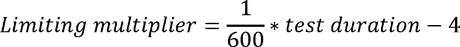 Limiting multiplier = 1/600 * test duration −4